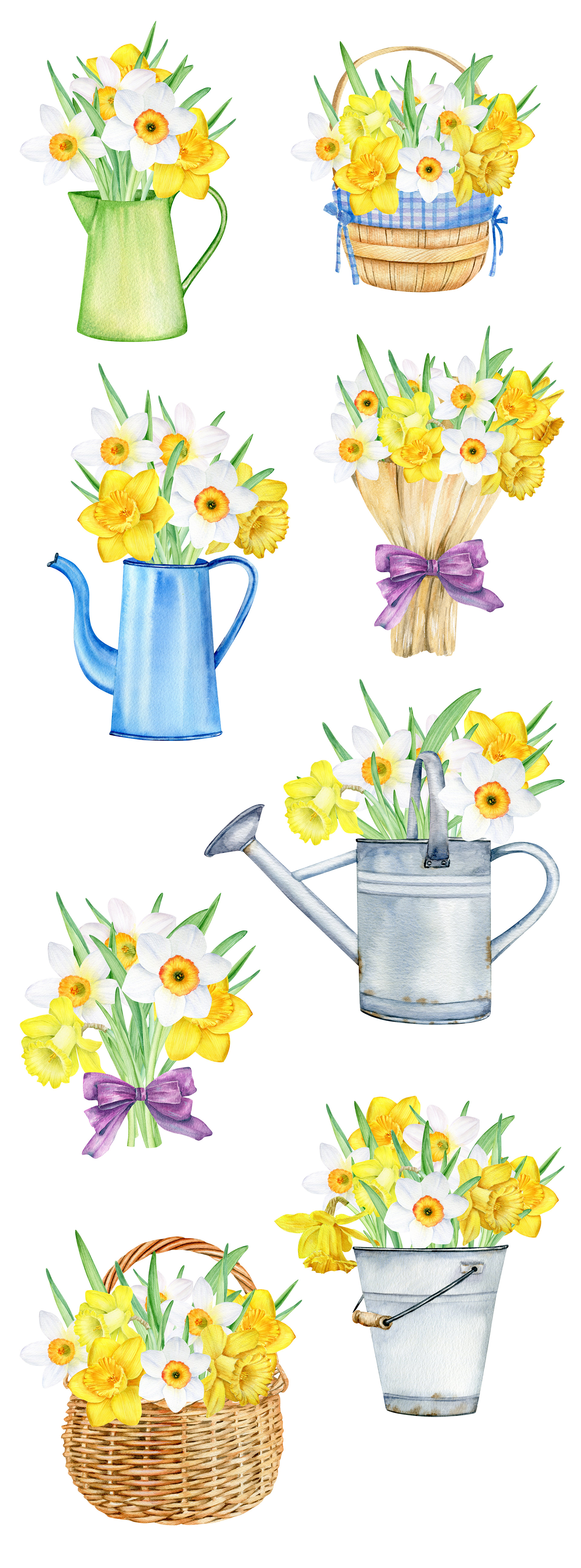 Aquarell-Illustrationen von Narzissen
